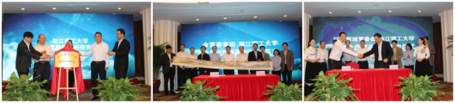 政校企戰略合作簽約儀式上,江南新城、金富春集團分別與浙江理工大學簽訂《政校戰略合作意向協議》和《校企全面合作框架協議》,參會領導共同見證這歷史性的時刻。