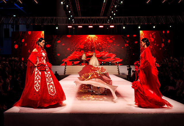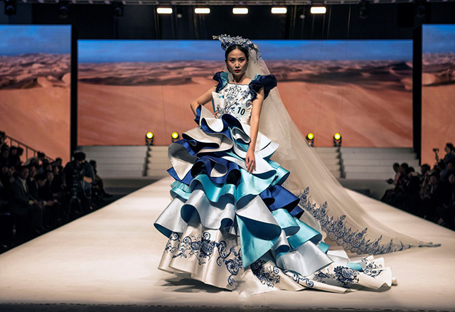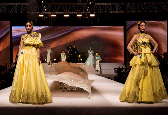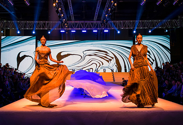 大賽以“時尚與經典”為主題,鼓勵參賽作品為運用絲綢天然材質,融入現代時尚元素,體現具有中國特色的絲綢時尚服裝和嵌入中國婚慶元素,展現具有東方特色的中式嫁衣。旨在提高我國絲綢服裝設計水平,引領絲綢消費新的潮流時尚,搭建國內專業設計人才交流平臺和展示舞臺,更好地推動繭絲綢產業轉型升級發展。世界絲綢網特邀“杭州城市新貌”攝影大賽金獎獲得者王建,拍攝了現場照片,與大家共同分享!